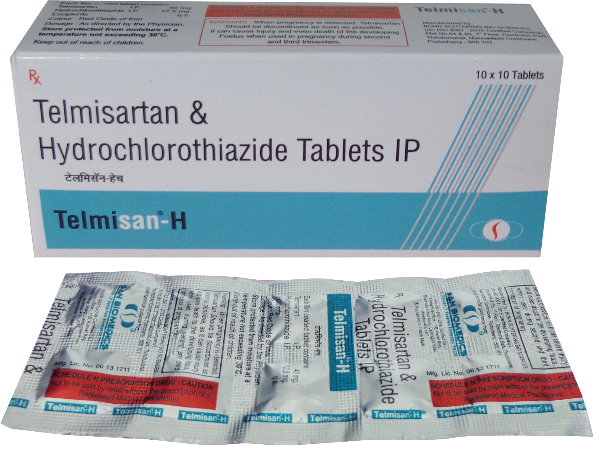 Telmisartan 40mg + Hydrochlorothiazide 12.5mg Tablets